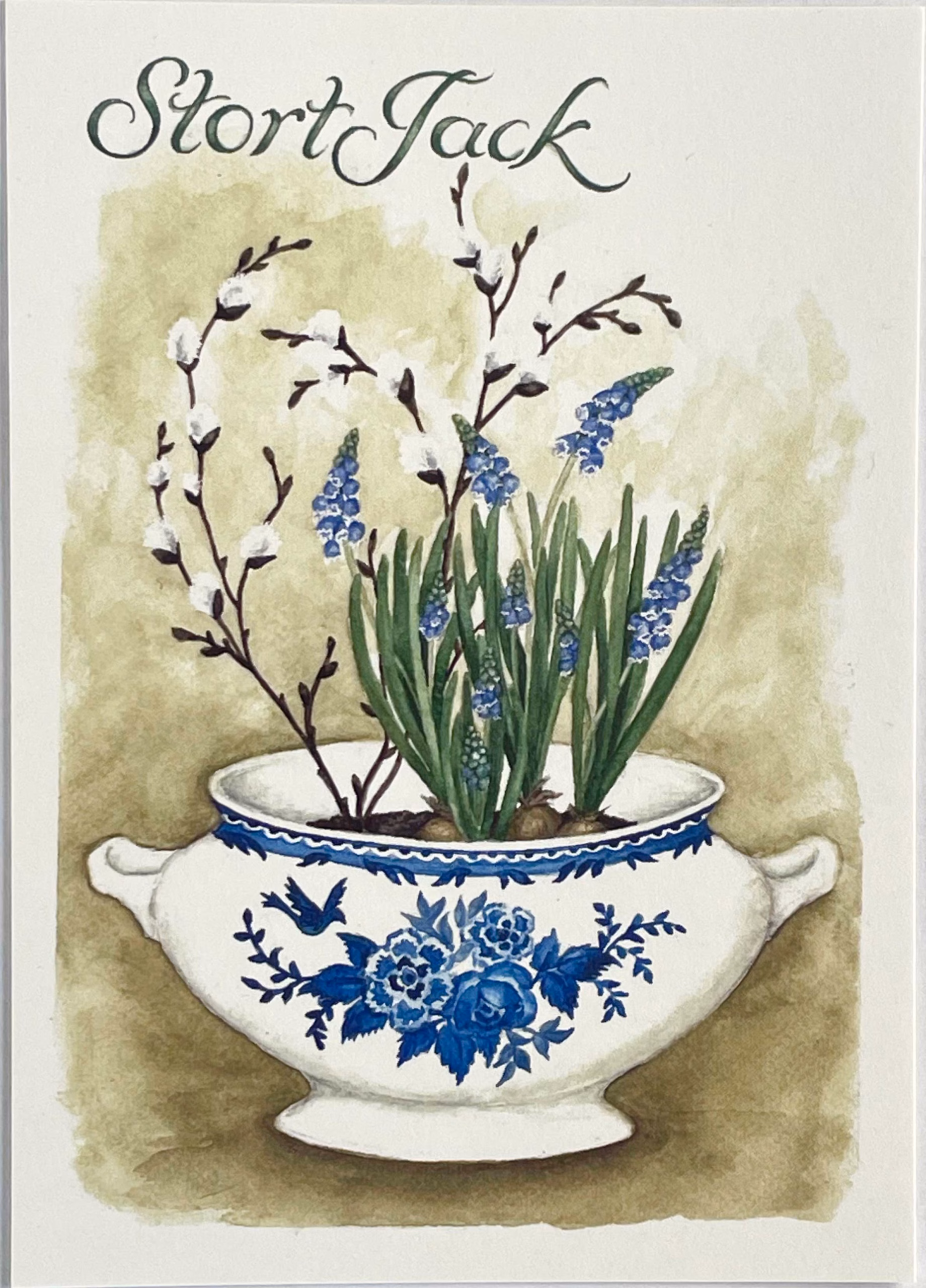 Vykort av akvarell i A6-format. Tryckt på syrafritt, åldersbeständigt 300 grams papper med slät yta, Scandia 2000 natural. Tom baksida med plats för egen hälsning.